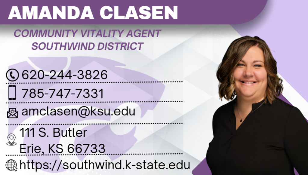 For more information or ideas on how you can volunteer in your community, contact Community Vitality Agent Amanda Clasen at any Southwind District office or [email protected].