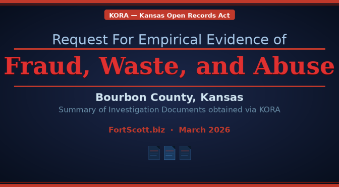 Commissioner Samuel Tran publicly stated he had “empirical evidence” of fraud, waste, and abuse in Bourbon County government. This generated significant public interest in what that evidence was and whether it would lead to prosecution. The documents in this summary are those obtained by KORA request for that evidence.