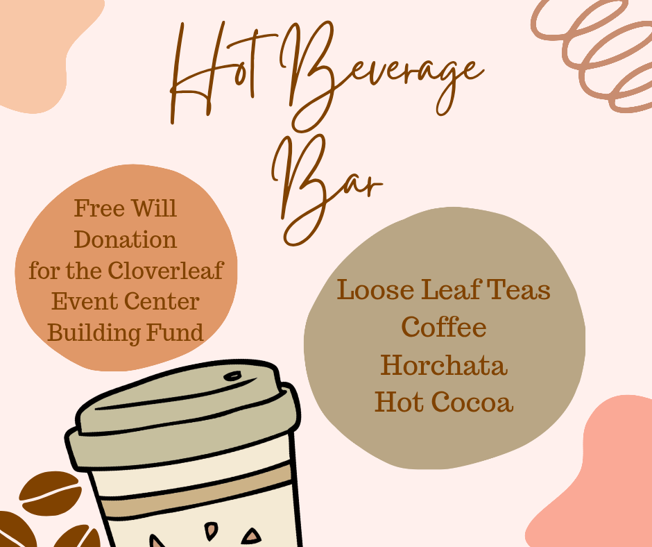 A Hot Beverage Bar will also be available for a Free Will Donation with all donations going to the Cloverleaf Event Center.