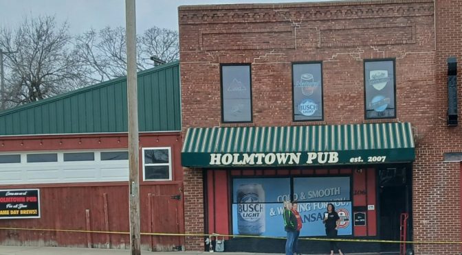 The front of Holmtown Pub on Feb. 17. The building’s west side collapsed, which caused an electrical fire.