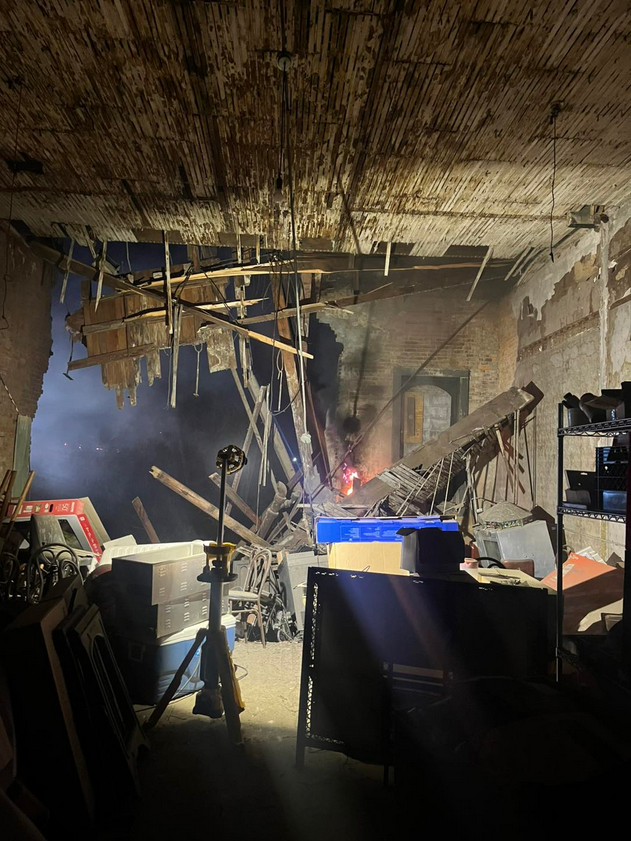 “The wall on the northwest section of the building collapsed, causing a small electrical fire,” said co-owner James Wood.