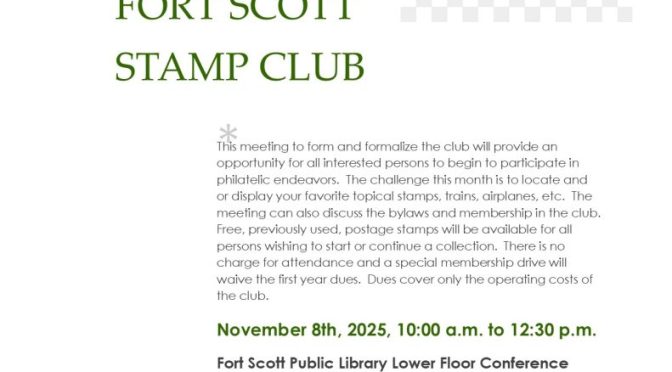 Entertainment, Fort Scott Fort Scott Stamp Club Meets November 8 At The Library October 24, 2025 Submitted Story Leave a comment Related