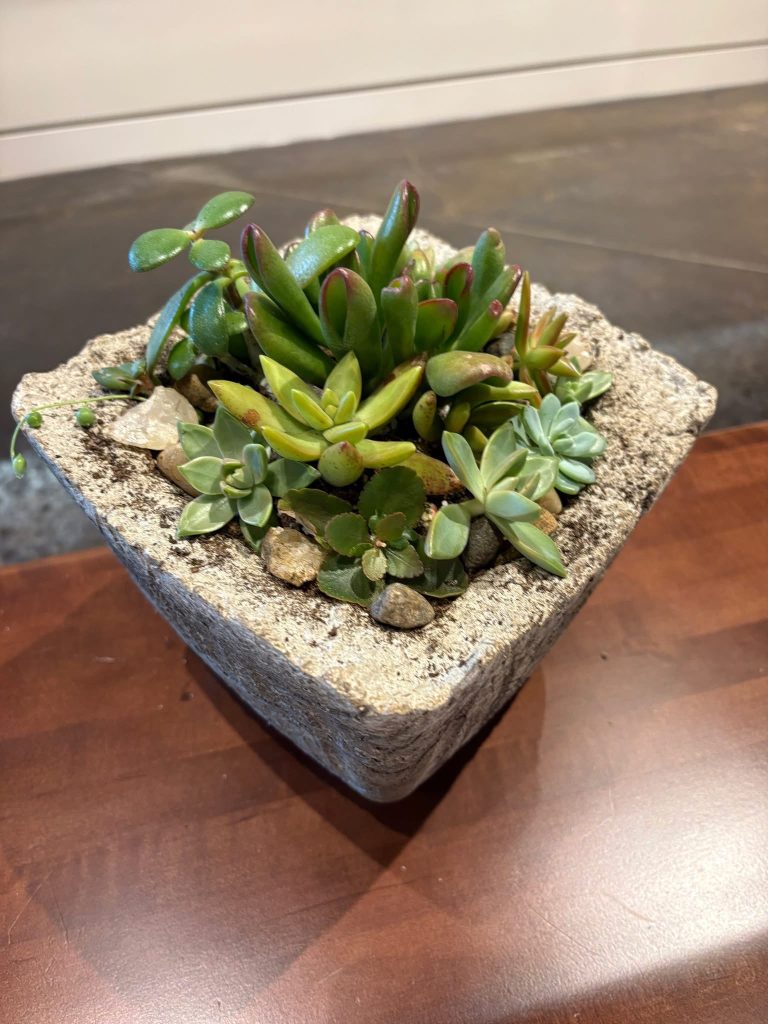 There will be drawings for several unique pots that have been planted with drought-resistant sedum.