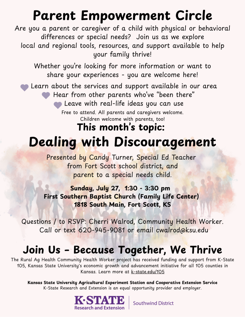 Bourbon County, Fort Scott, Youth July 27 Is the Parent Empowerment Circle July 17, 2025 Submitted Story Leave a comment Related