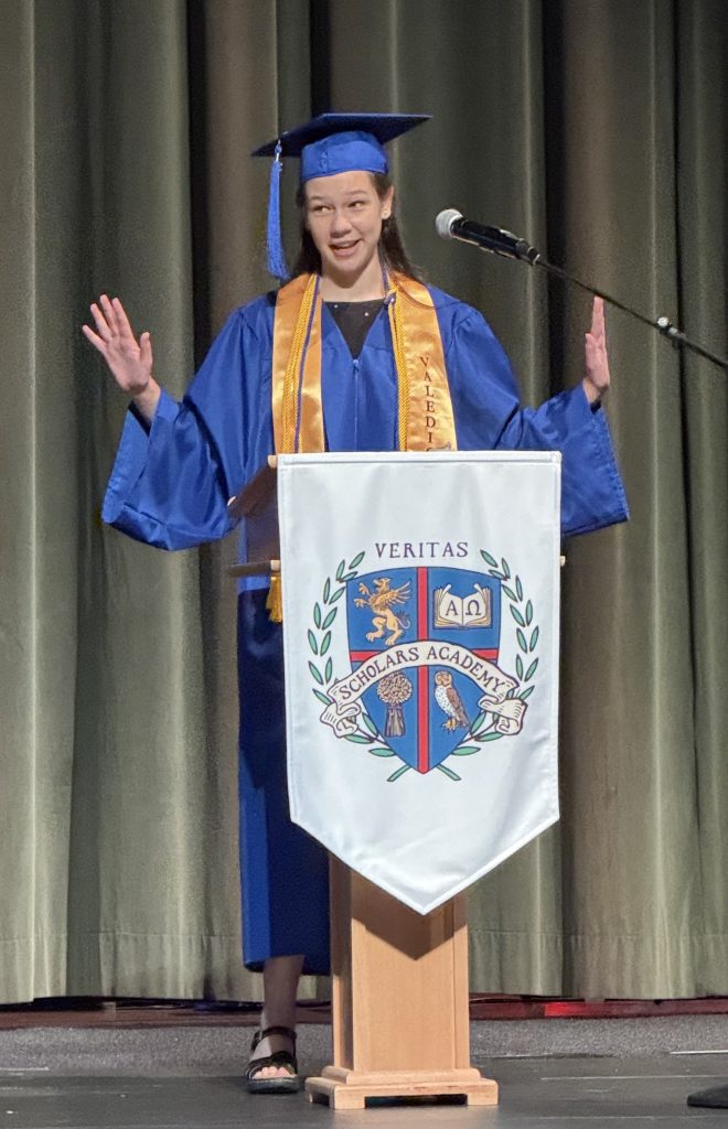 Katy homeschooled through Veritas Scholars Academy (VSA), which is an online school based in Lancaster, PA. On May 30th, she graduated as valedictorian in her class of 115 other students from all over the world.