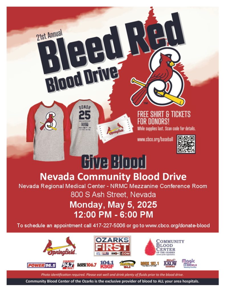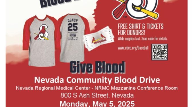 Area News Nevada Community Blood Drive is May 5 April 29, 2025 Submitted Story Leave a comment Related