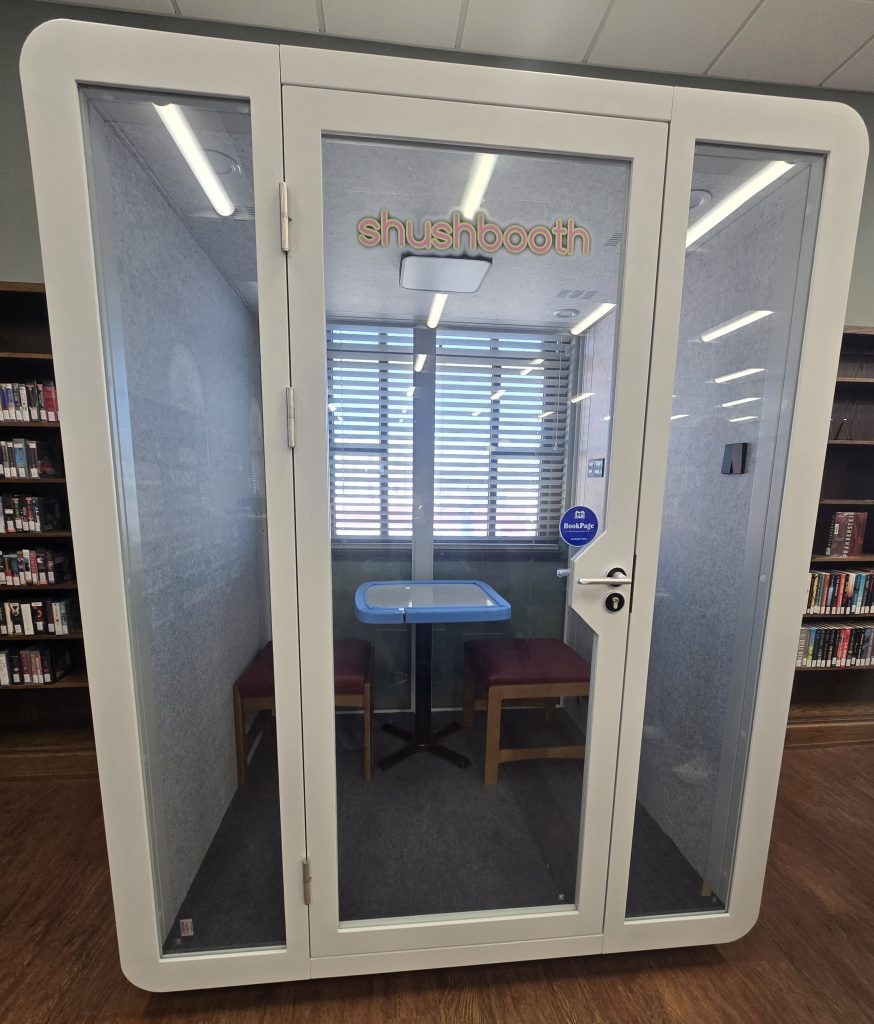 “The Shushbooth is part of the ALA grant,” she said. ” It was $20,000 for the library to support a project serving children in the community with sensory issues. The Shushbooth and the sensory toys the library is ordering are tied to that grant. The toys are also slowly arriving.”