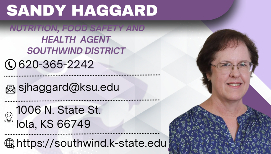 Sandy Haggard is the new Southwind K-State Nutrition, Food Safety, and Health Agent, who has an office out of Iola.