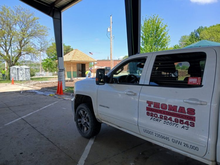 Thomas Construction of Fort Scott employees poured concrete on April 25 at the new 12-foot by 14-foot public restroom project. The restroom is located northeast of the Pavilion, on North National at Old Fort Boulevard.