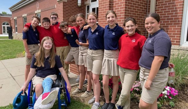 St. Mary’s Catholic School sixth-grade students worked to continue the tradition of beautifying the school grounds.