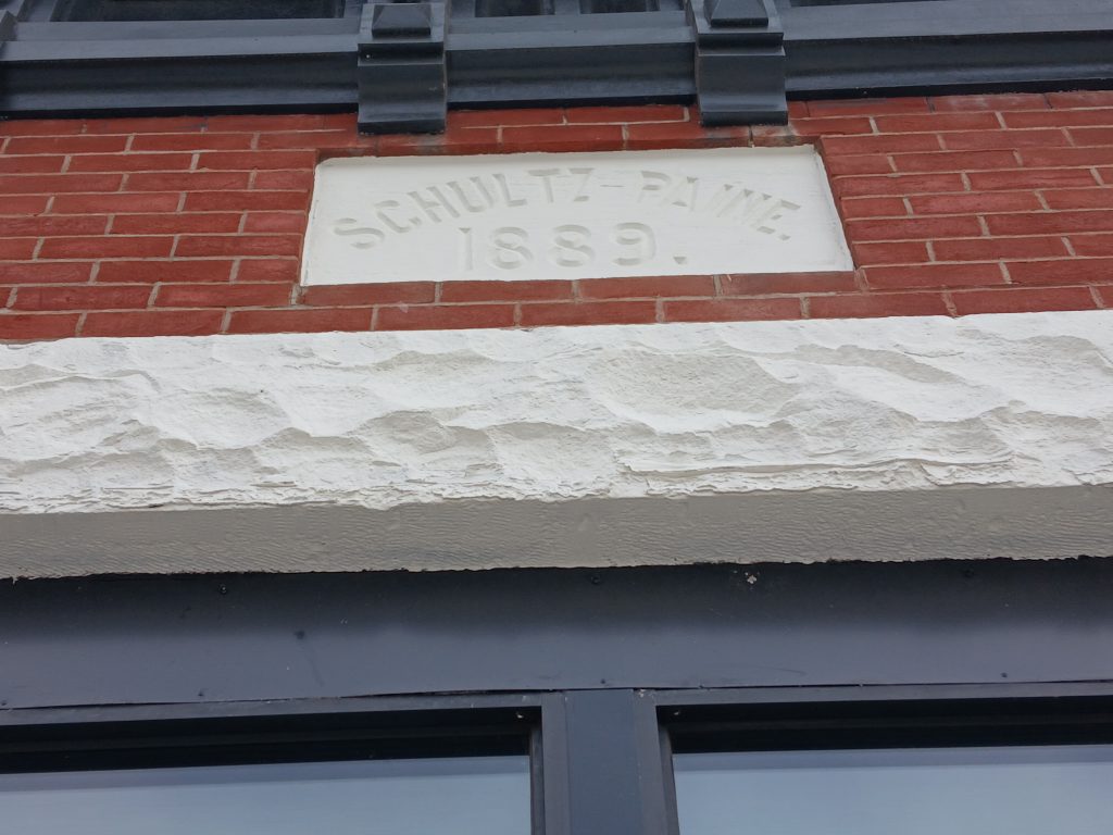 This original sign on the west side of the building, which says Schultz-Payne Building, 1889, remains intact.