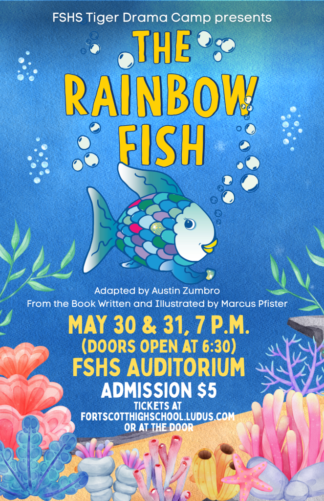 The Fort Scott High School Tiger Drama Camp presents “The Rainbow Fish: An Undersea Adventure” by Austin Zumbro at 7 p.m. on May 30 and 31 at the FSHS Auditorium.