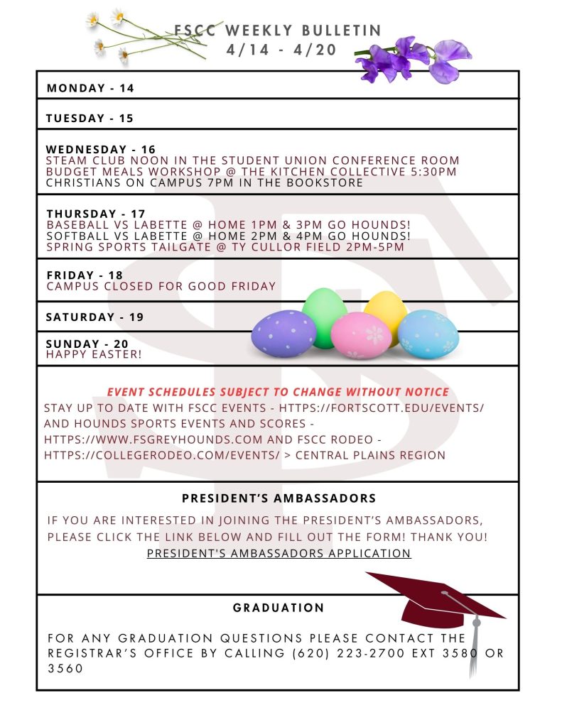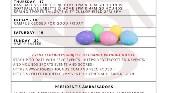More than three Fort Scott Community College (FSCC) Board of Trustees members may be present during a reception honoring outgoing board members on Monday, December 15, 2025 from 5:00 pm – 5:30 pm, but no official business will be conducted during that time. The regular board meeting begins at 5:30 pm.